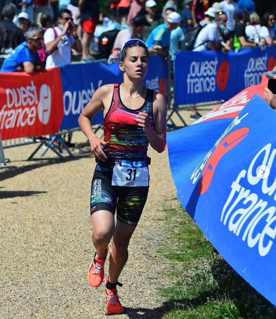 « Championnat de France de triathlon : Contente de ma course. Malgré une natation compliquée, un bon vélo et une bonne course à pied me permettent de remonter et de finir à la 17 ème place. » Yeliz