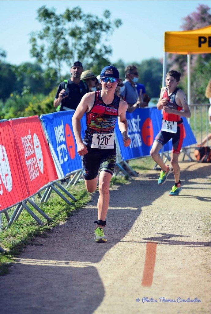 « Toute première au championnat de france de triathlon. Trop bonne ambiance mais course pas trop satisfaisante. Petite chute en vélo qui me fait perdre le pack et le reste du vélo dur. 92 ème de france de ma catégorie minime. Mais je reviendrai plus fort l’année prochaine » Mathias