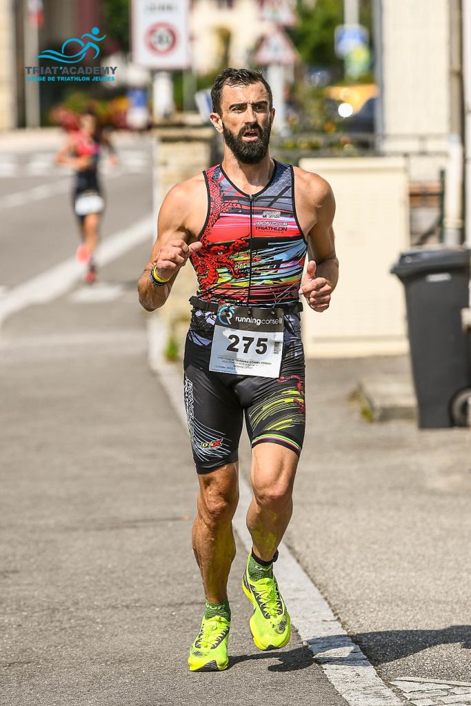 Quel plaisir de raccroché un dossard depuis presque 2 ans. Départ très rapide je choisis de lever le pied rapidement pour rependre un rythme qui me correspond mieux. Le parcours est sympa et est fait de plusieurs boucles ce qui nous permet d’avoir des encouragements a chaque passage aux ravitaillements. Je finis la 1ere course à pied bien entamé mais heureux de partir sur le vélo, la aussi le parcours fait des boucles on se croise avec les copains c’est très sympa. Malheureusement je suis esseulé et ne parviens pas a prendre de groupe, tant pis je fais les 20km a bloc avec a chaque tour les encouragements des jeunes pour me remotiver. Reste la deuxième course a pied, plus l’habitude des enchainements les sensations sont étranges, heureusement il n’y a que 2,5 km. J’ai pris beaucoup de plaisir a faire la course et a croiser les copains du club que ce soit en tant que compétiteurs, spectateurs et même signaleurs le long de la route.