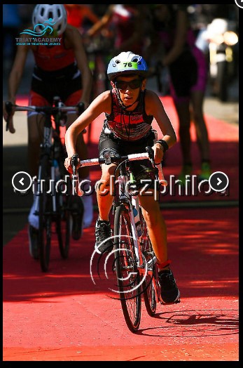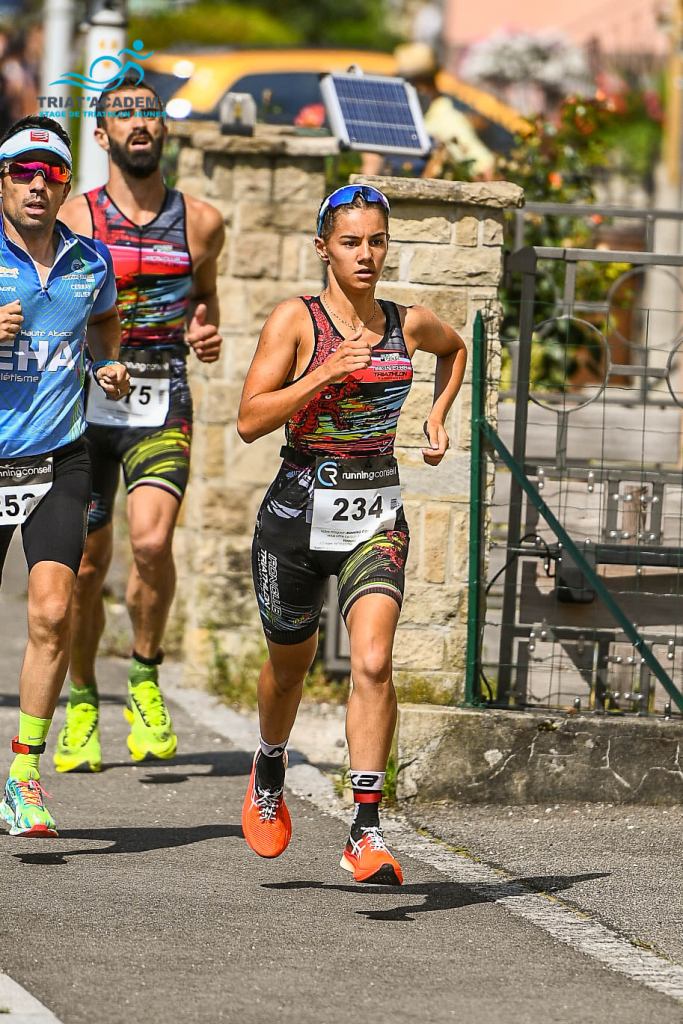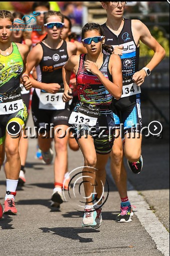 je suis plutôt contente de ma course, j’ai fait ce que je voulais faire ! Dans la première course à pied, j’étais bien, et c’était une première pour moi. La transition avec des élastiques a été très bien réussie pour ma première fois. En vélo, j’étais dans un bon groupe ce qui m’a permis de garder une bonne place. À la deuxième course à pied, j’ai rattrapé quelques personnes malgré le fait que j’étais très fatiguée, et malheureusement, je m’en tire avec une blessure.