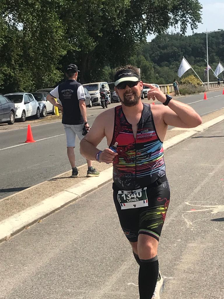 Lionel « Comme prévu c’était une course difficile avec une belle chaleur sur la course à pied. Compte tenu de ma préparation de ces derniers mois entaché par des soucis musculaires, je suis très satisfait d’être finisher de cet Ironman 70.3 sans avoir eu de crampes lors de la course à pied même si j’ai dû marcher quelques fois à partir du 15e km. Maintenant repos et soins et on repart sur une préparation mieux réfléchie sur tous les points (accompagnée d’une petite perte de poids) histoire de finir mieux et plus fais l’année prochaine en prenant encore plus de plaisir. Merci à Carole et Fabrice et aux supporters Isa, Christelle, Luc et Steeve pour les encouragements qui ont fait du bien lors des moments difficiles. »