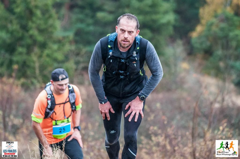 Steeve : Les foulées du souvenir, deuxième participation. Je savais où je mettais les pieds donc départ plus que tranquille pour une mise en route sur 5km. Par la suite les sensations sont revenues et j’ai déroulé tranquillement. Puis le clou de la course, la cerise sur le gâteau, les 3 derniers kms de montée qui finissent par te chauffer les cuisses si c’était pas encore le cas. Au final, 28km 1280 D+ en 3h19 soit 11 mins de mieux qu’en 2019. Comme quoi, les litres de sueurs du mardi soir valaient bien la peine. Une super ambiance, une organisation top et une petite Iron boys and girls team soudée. Bref un trail sympa que je recommande à tous ceux qui aiment souffrir, ou sourire.