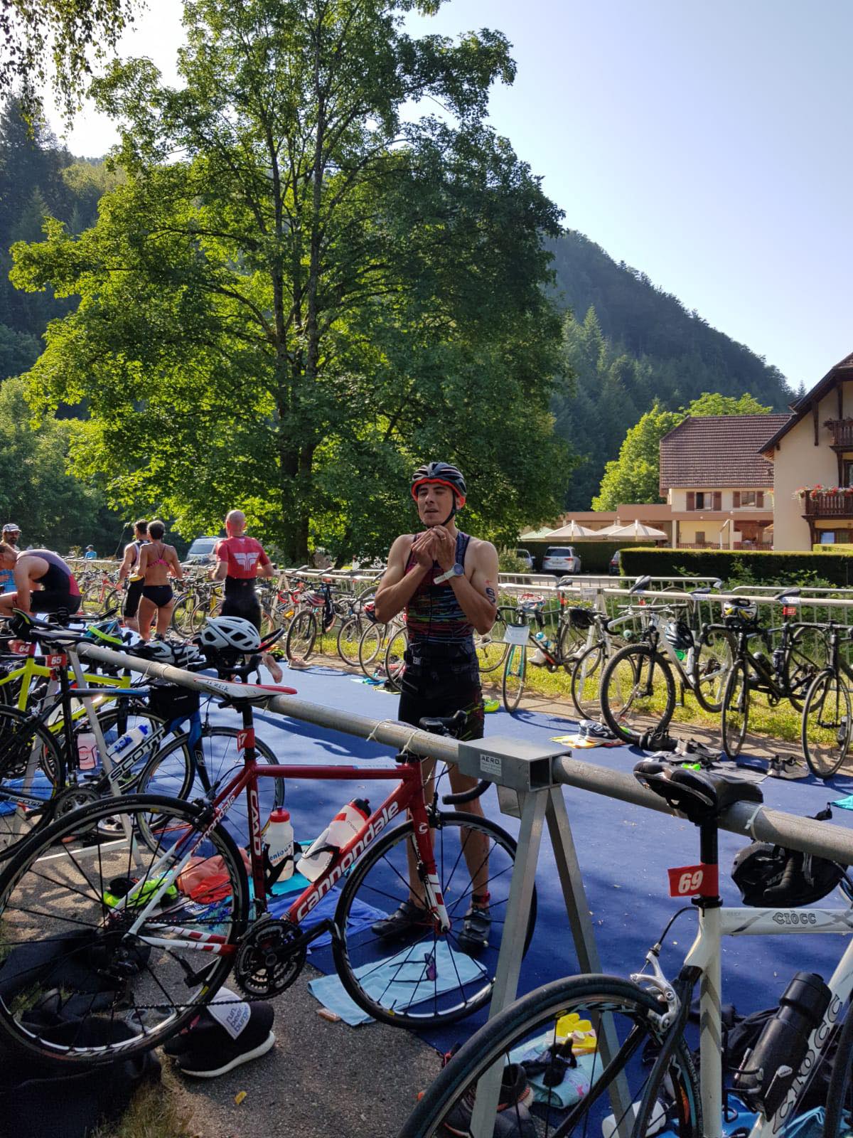 Le club a été représenté sur presque toutes les courses. Première course de la journée le format S. Gilles (le gentil) prenais le départ de son tout premier triathlon qu’il a brillamment terminé en 1h15 à la 28ème place. Une bonne course du début à la fin. Il était suivi de près par David qui termine à la 30ème place. Une très belle course, surtout que David a dû arrêter la course à pied pendant un moment. Dominique termine à la 70ème place. Une belle course mais avec cette chaleur difficile de respirer pour les asthmatiques et cela même dans l’eau qui pour une fois n’était pas froide ! Marion termine 73ème après une natation difficile et comme toujours un super vélo et une bonne course à pied. À la 108ème place Annaëlle, qui reprenait le triathlon après 3 années sans compétition, merci à la pandémie. Une bonne natation, un vélo dans les temps et une course à pied très difficile avec de fortes chaleurs. 128ème place pour Camille qui est aussi venu à bout de son premier triathlon ! Une bonne natation avec un peu de retenue pour garder des forces pour la suite. Une T1 compliquée, ce n’est pas toujours facile d’enlever la combinaison ! Un vélo dans les temps et une course à pied difficile, mais ça c’était le cas pour tout le monde dans ces conditions.