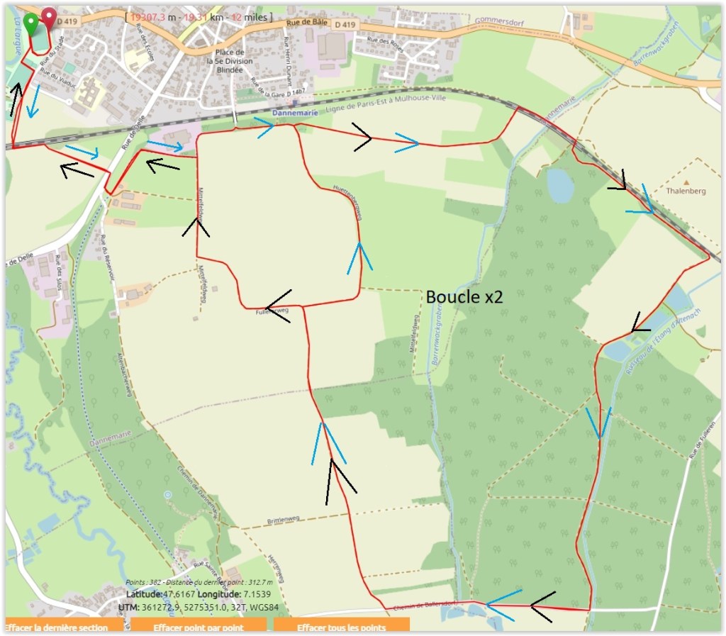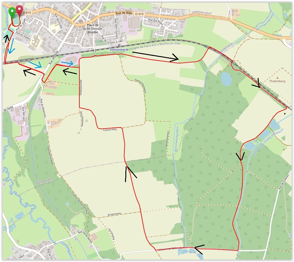 Départ / arrivée : Au stade de Dannemarie : 5 Rue du Stade, 68210 Dannemarie