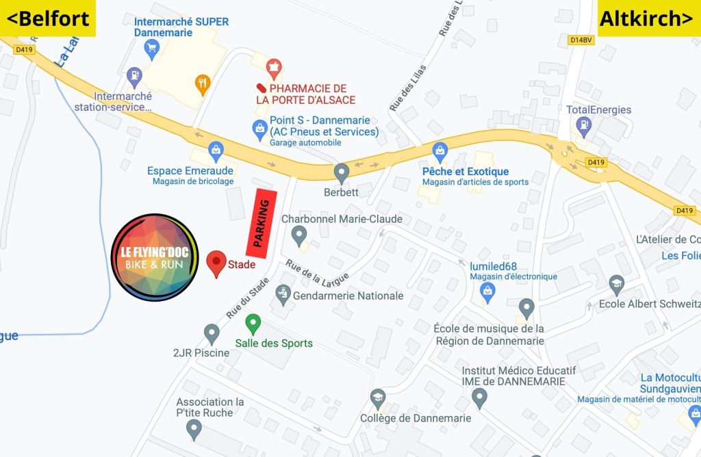 Retrait des dossards : à partir de 8h. Au stade de Dannemarie : 5 Rue du Stade, 68210 Dannemarie